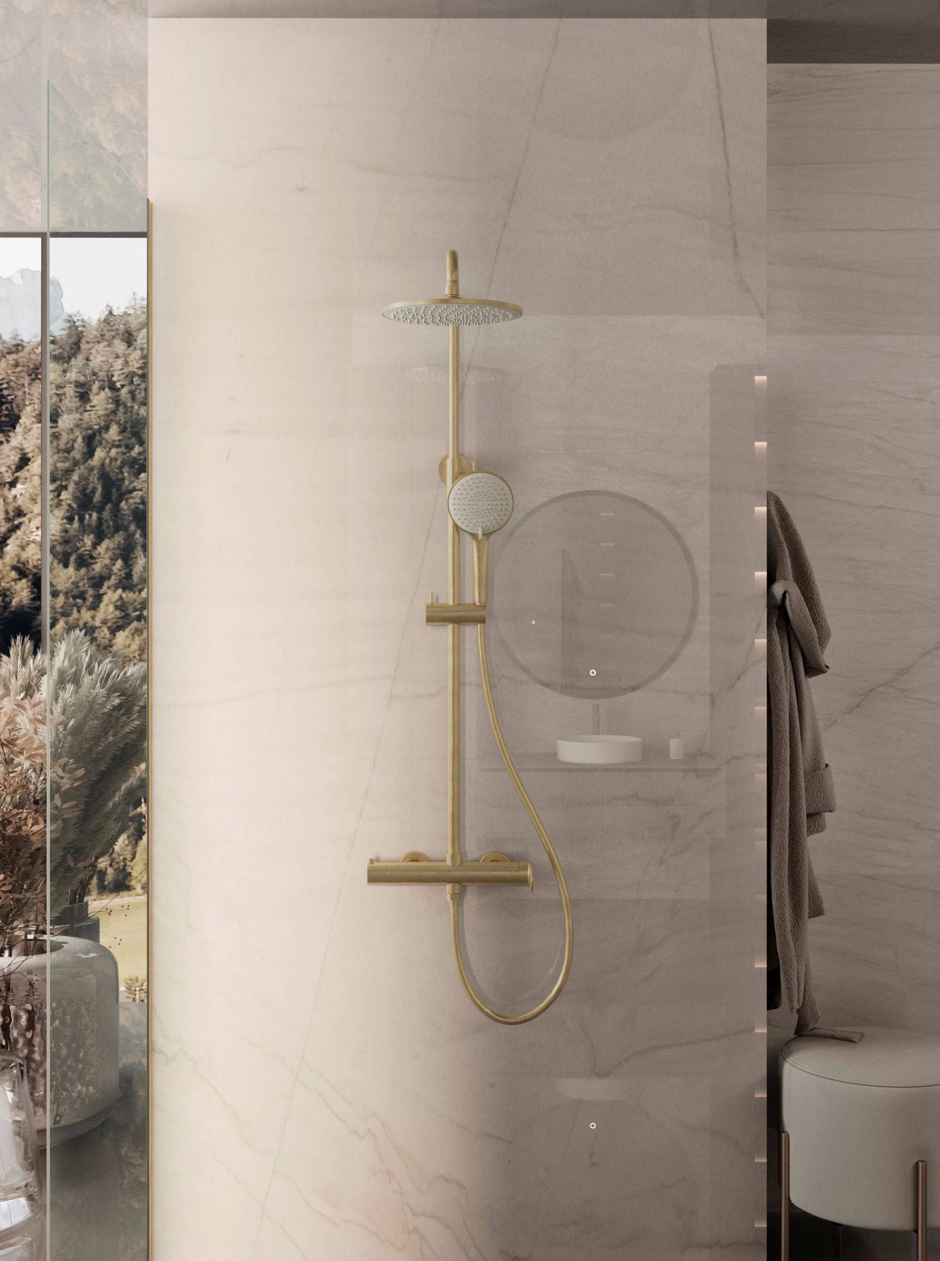 Душевая стойка Vincea Rondo VSFS-1R0BG без излива, брашированное золото