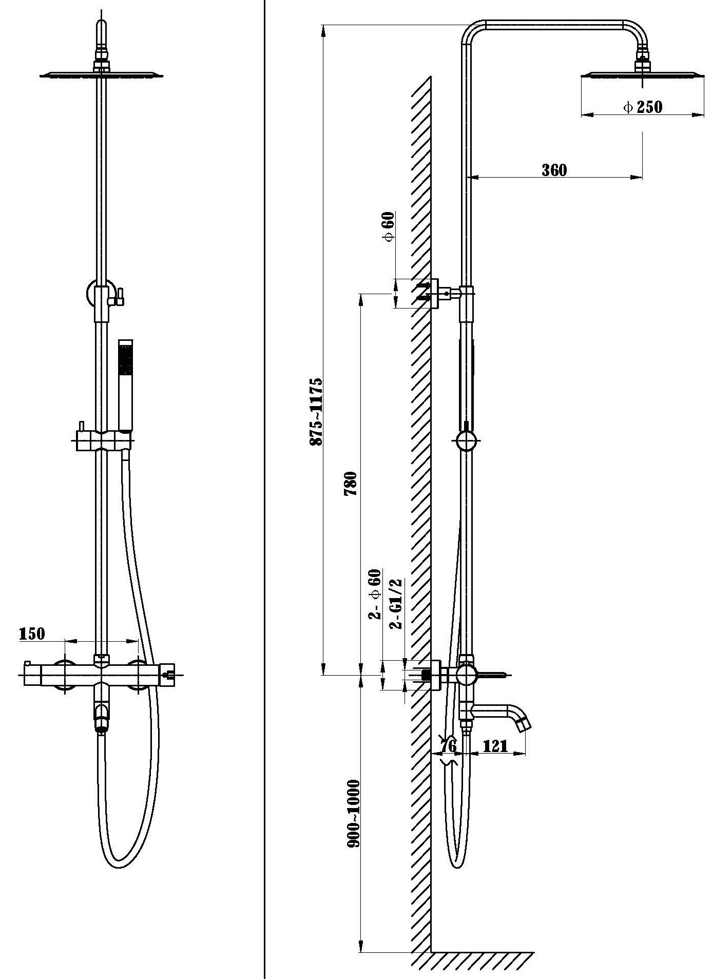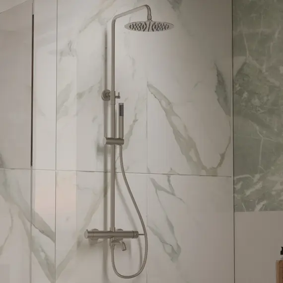 Душевая стойка Vincea Villa VSFS-1VL1BN с изливом, 25см верх. душ из нерж. стали, брашированный никель