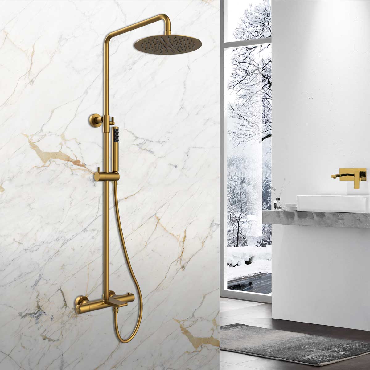Душевая стойка Vincea Vogue VSFS-1V1TBG термостатическая, брашированное золото