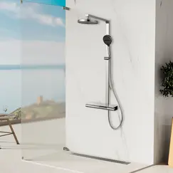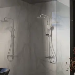 Душевая стойка представляет собой комбинацию верхнего и ручного душа. В комплектацию входит стойка, на которой закреплена лейка верхнего душа, соединительный шланг и насадка ручного душа, иногда – смеситель и мыльница. Система достаточно компактна. Монтаж ее прост и не требует непременного участия специалиста. Для системы характерно определенное стилевое единство. В целом стойки именитых производителей выглядят достойно и элегантно, и могут украсить собой самую презентабельную ванную. Они могут быть оформлены в различных стилях – под старину или модерн. Главное же, могут иметь различные принятые дополнительные функции. Именно ими и отличается современная душевая система от традиционно-допотопного душа.