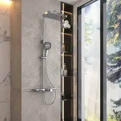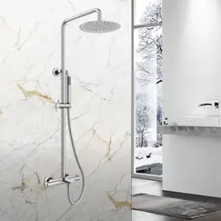 Душевая стойка представляет собой комбинацию верхнего и ручного душа. В комплектацию входит стойка, на которой закреплена лейка верхнего душа, соединительный шланг и насадка ручного душа, иногда – смеситель и мыльница. Система достаточно компактна. Монтаж ее прост и не требует непременного участия специалиста. Для системы характерно определенное стилевое единство. В целом стойки именитых производителей выглядят достойно и элегантно, и могут украсить собой самую презентабельную ванную. Они могут быть оформлены в различных стилях – под старину или модерн. Главное же, могут иметь различные принятые дополнительные функции. Именно ими и отличается современная душевая система от традиционно-допотопного душа.