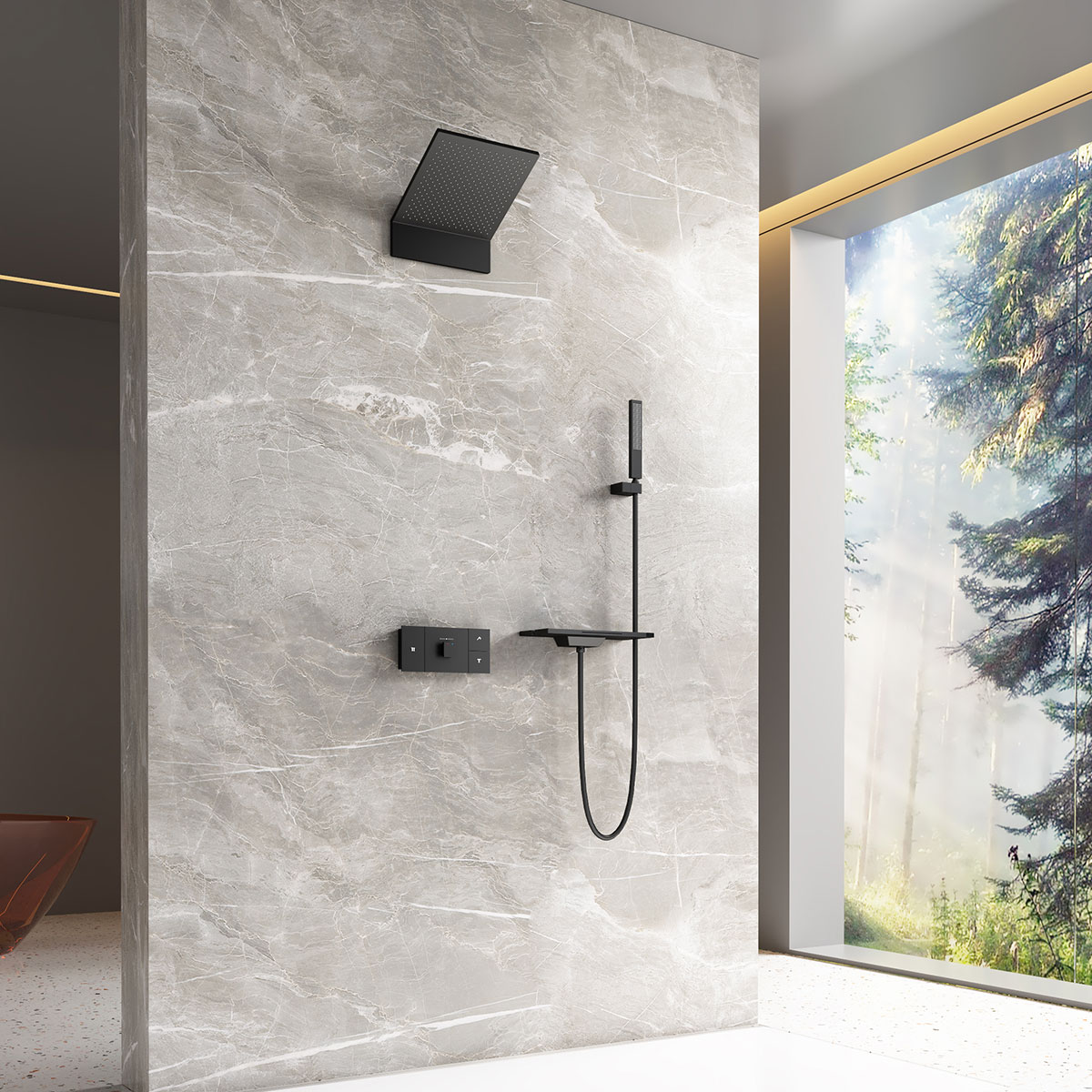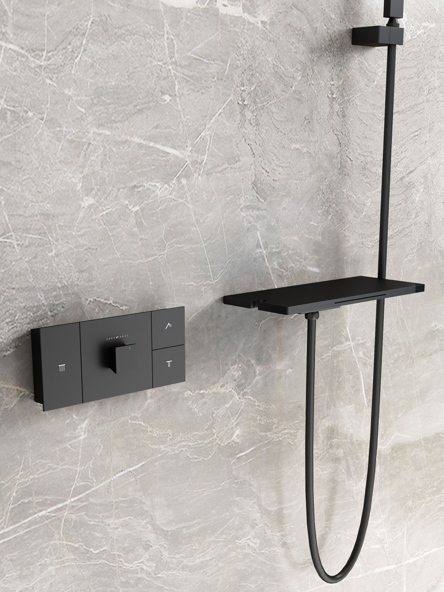 Душевой комплект Vincea Futura VSFW-2F11TMB термостатический встраиваемый, 3 режима, черный