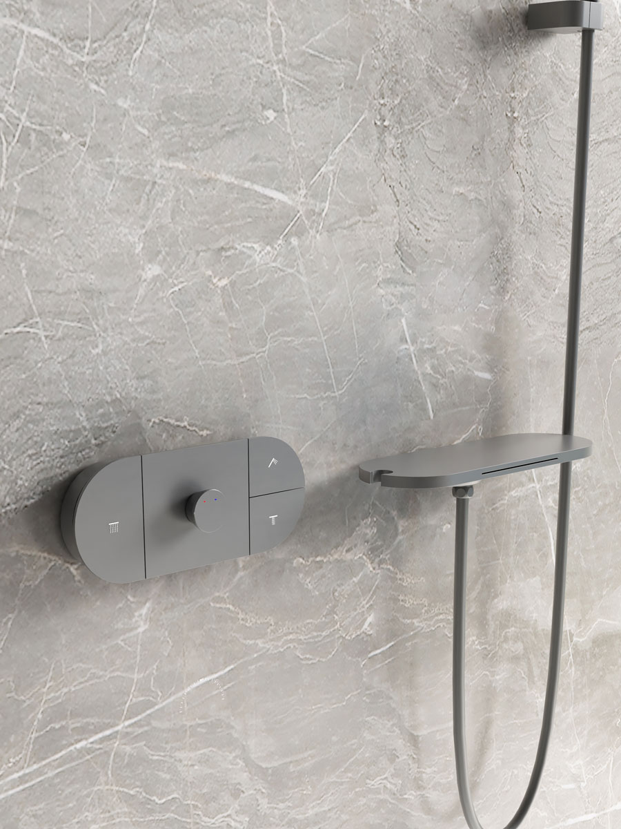Душевой комплект Vincea Futura VSFW-2F12TGM термостатический встраиваемый, 3 режима, вороненая сталь