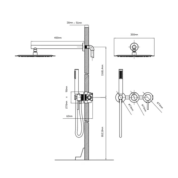Душевой комплект Vincea Groove VSFW-4G01BG4 встраиваемый, 2 режима, 30см верх душ, брашированное золото