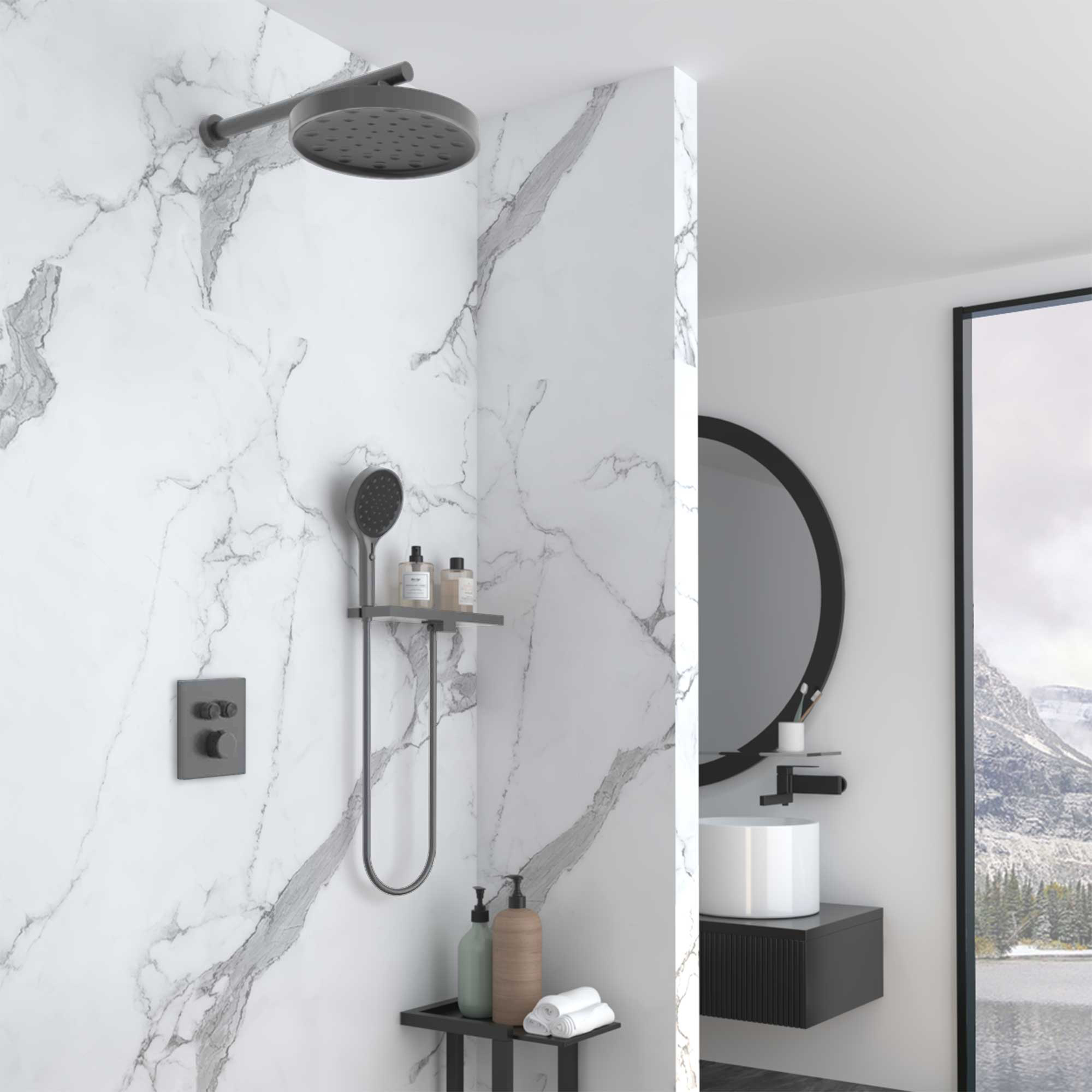 Душевой комплект Vincea Inspire VSFW-3I21MT2RGM встраиваемый, термостат, двухрежимный, вороненая сталь