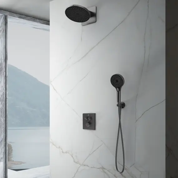 Душевой комплект Vincea Inspire VSFW-3I21MT5GM встраиваемый, термостат, двухрежимный, вороненая сталь