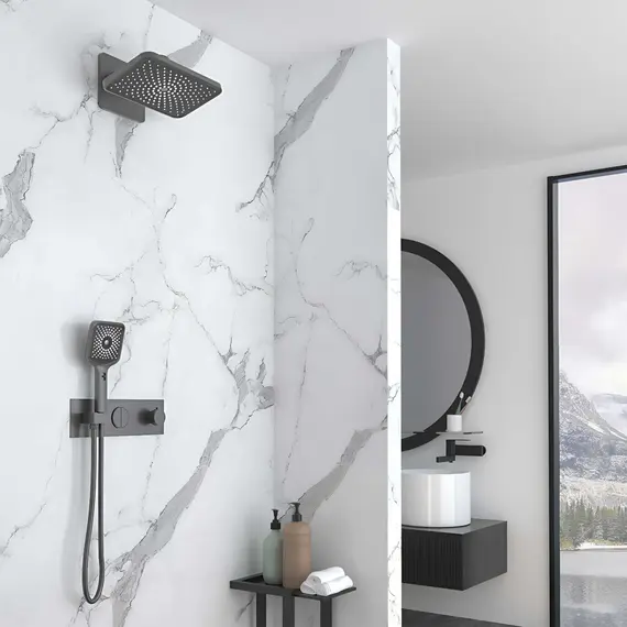 Душевой комплект Vincea Inspire VSFW-422TI4GM встраиваемый, термостат, двухрежимный, вороненая сталь