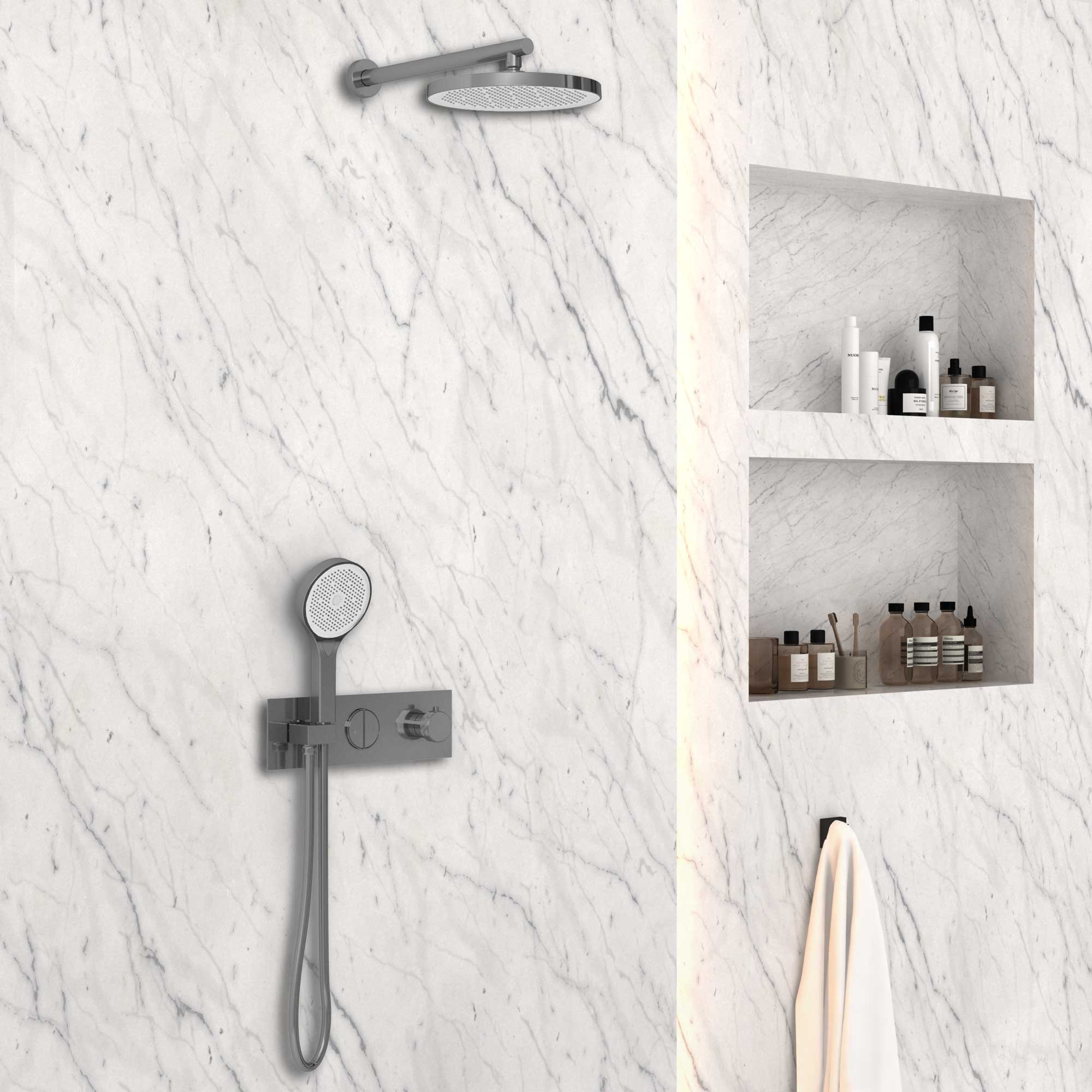 Душевой комплект Vincea VSFW-422T2GM встраиваемый, термостатический, 2 режима, вороненая сталь