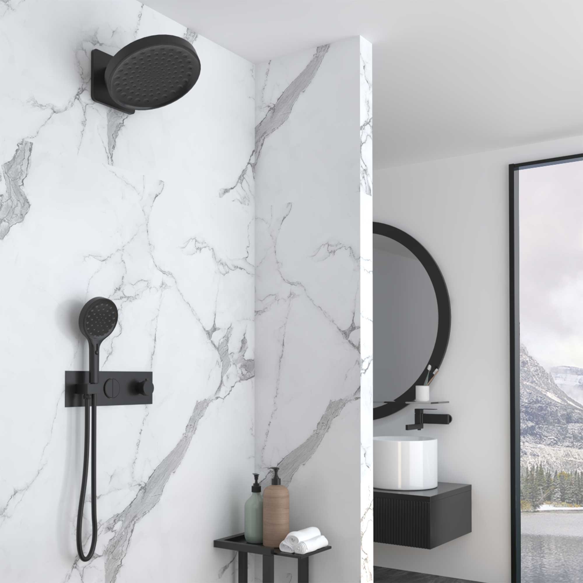 Душевой комплект Vincea VSFW-422TI3MB встраиваемый, термостатический, двухрежимный, черный