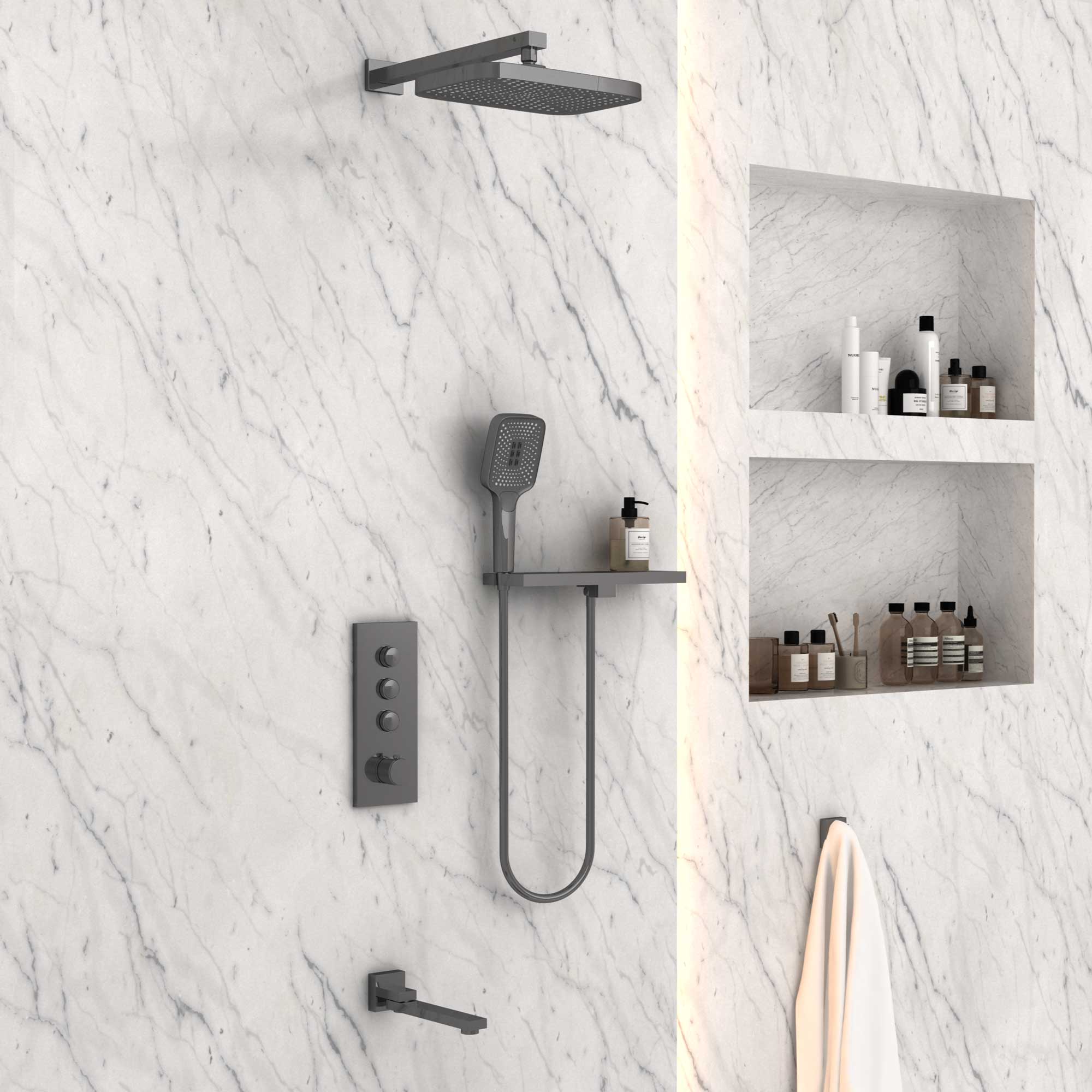 Душевой комплект Vincea VSFW-431T1RGM встраиваемый, термостатический, 3 режима, вороненая сталь
