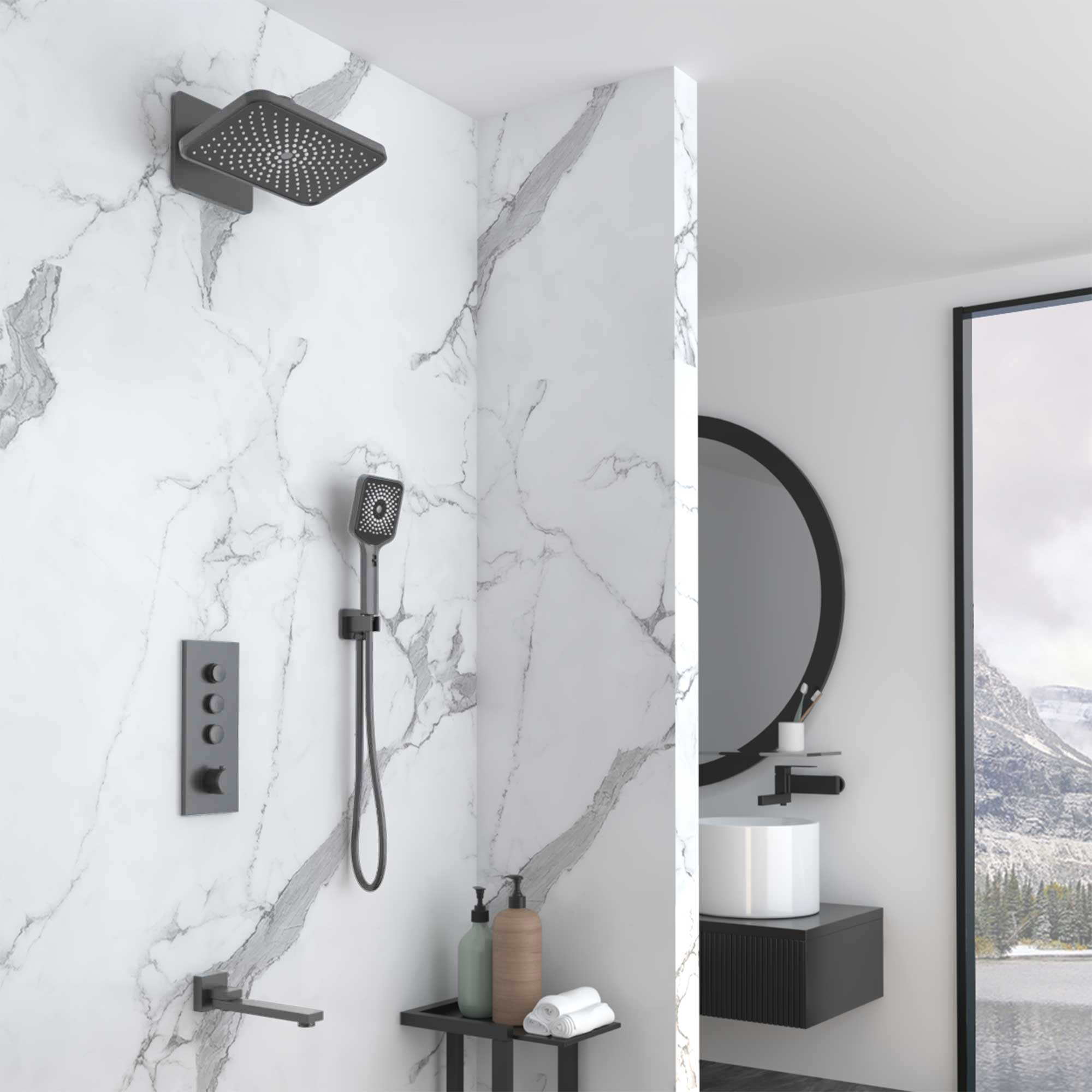 Душевой комплект Vincea VSFW-433TI4GM встраиваемый, термостат, трехрежимный, вороненая сталь