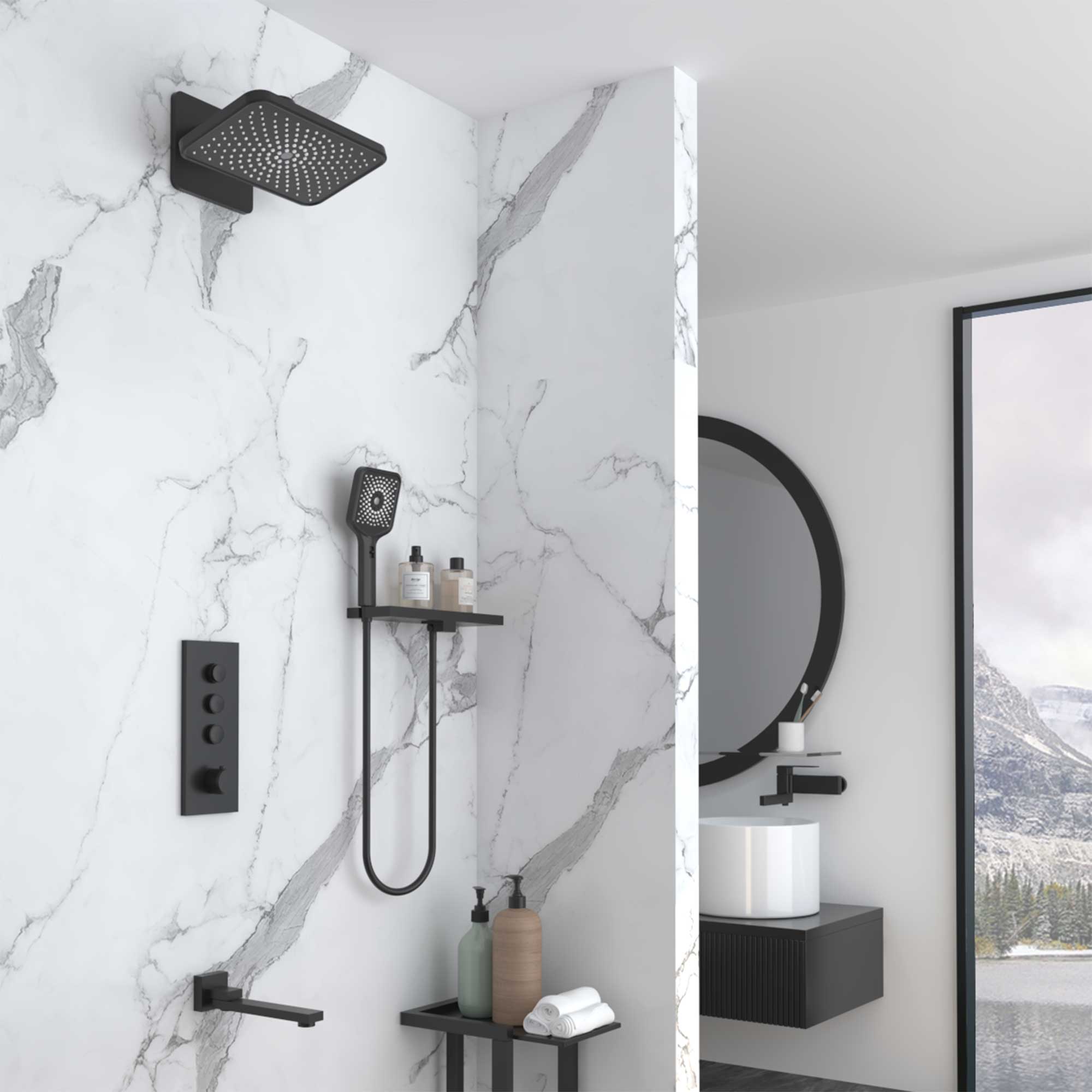 Душевой комплект Vincea VSFW-433TI4RMB встраиваемый, термостатический, трехрежимный, черный