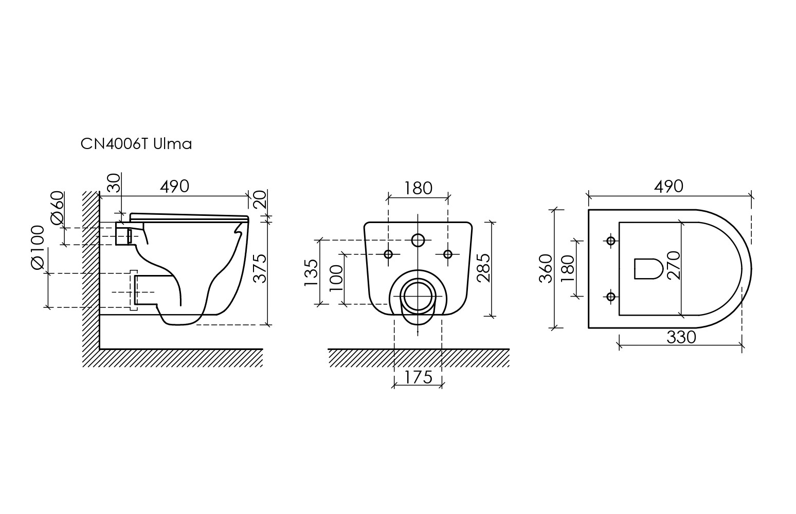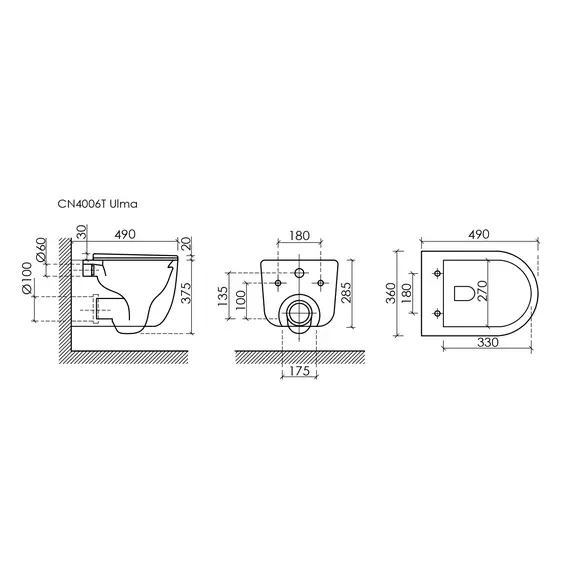 Подвесной унитаз CERAMICANOVA Ulma, черный матовый