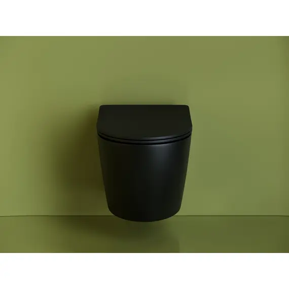 Подвесной унитаз Uno Rimless, глубокий смыв, с крепежом для полностью скрытого монтажа, ультратонким сидением из дюропласта и крышкой с функцией плавного закрытия, черный матовый