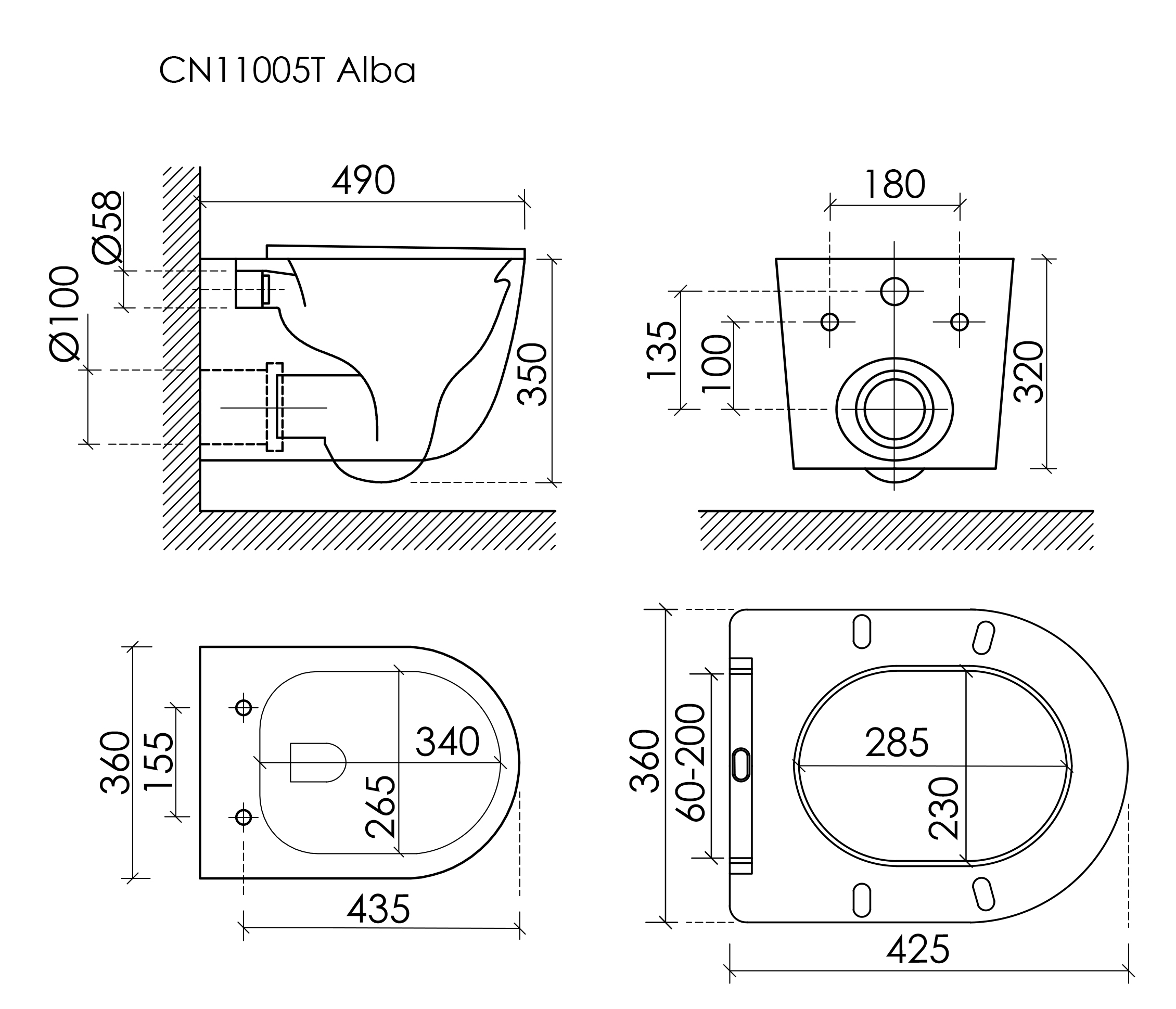 Унитаз подвесной CERAMICANOVA Alba, белый