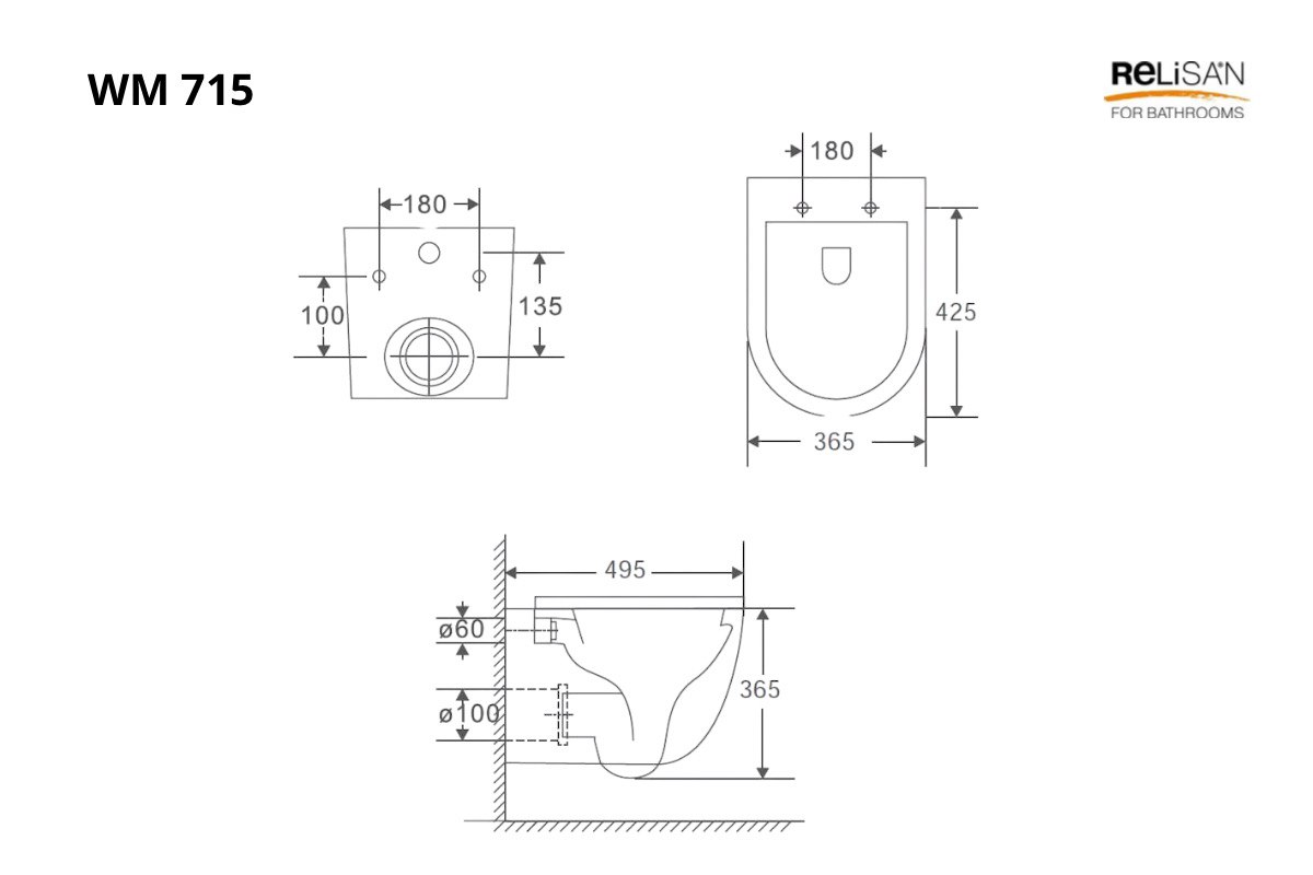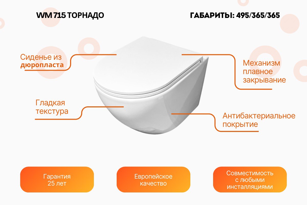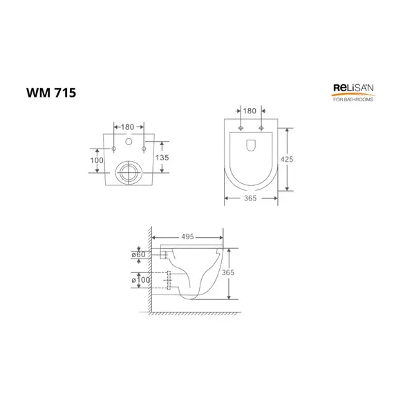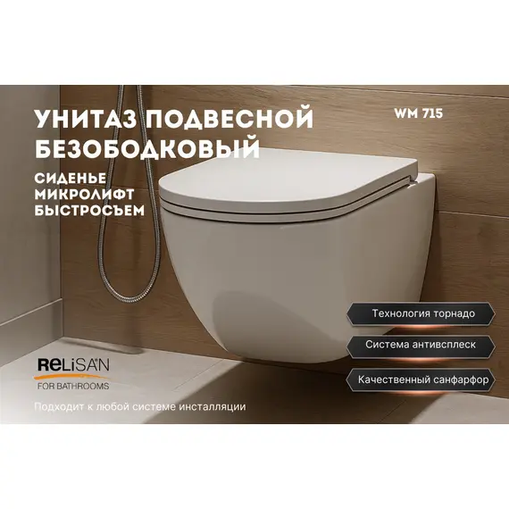Унитаз подвесной Relisan WM 715/смыв - торнадо