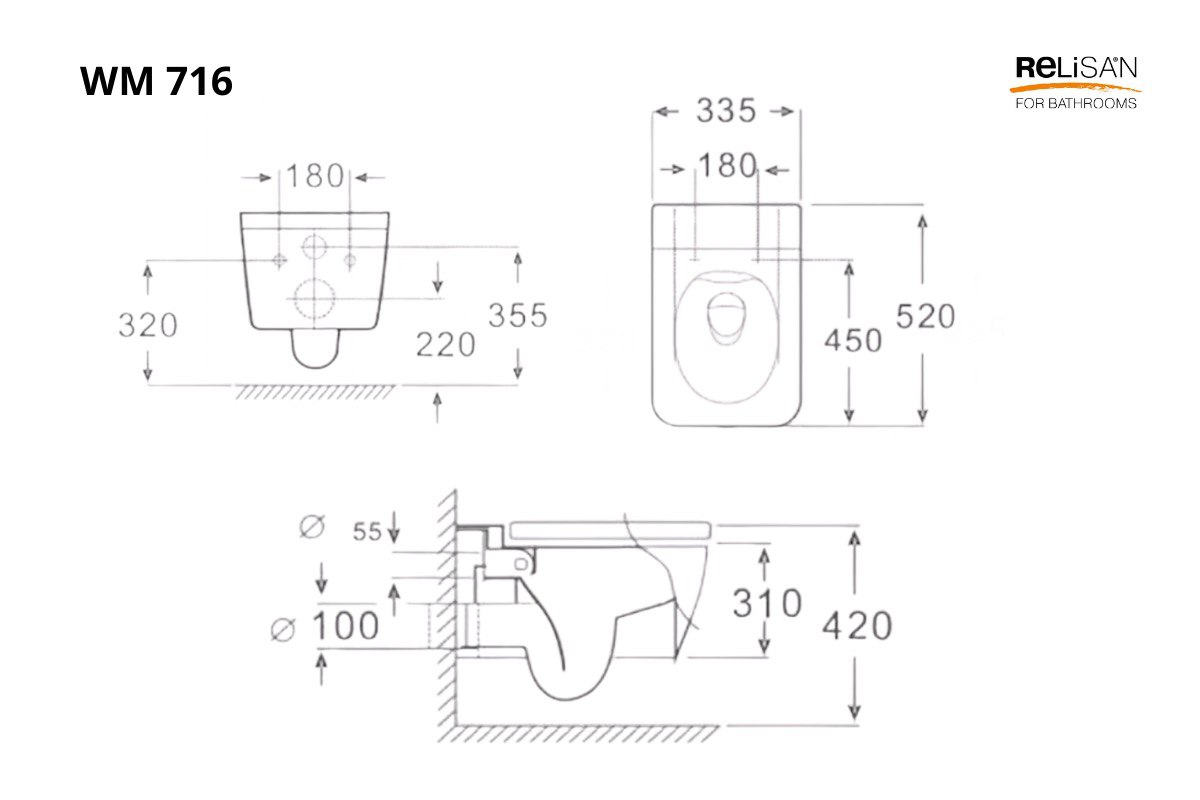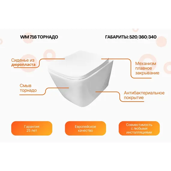 Унитаз подвесной Relisan WM 716/смыв - торнадо