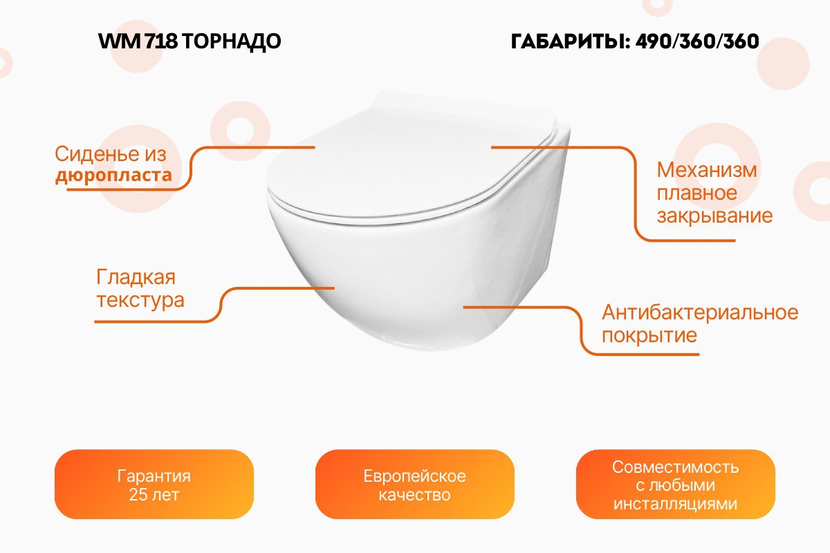 Унитаз подвесной Relisan WM 718/смыв - торнадо
