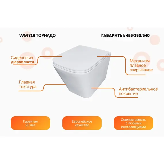 Унитаз подвесной Relisan WM 719/смыв - торнадо