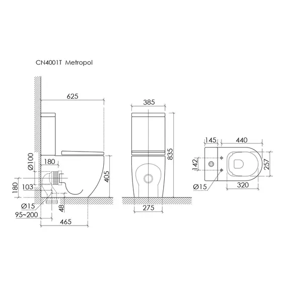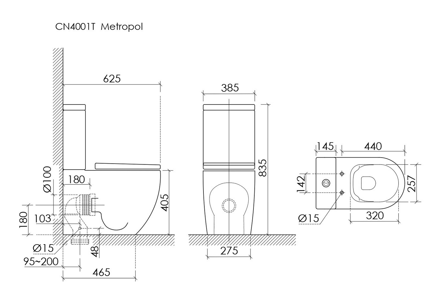 Напольный приставной унитаз CERAMICANOVA Metropol, черный матовый