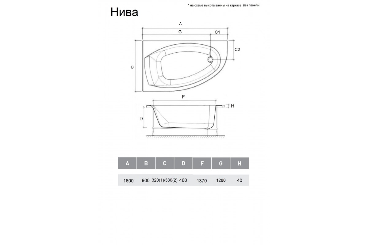 Ванна акриловая Relisan Eco Plus Нева Л 160х90