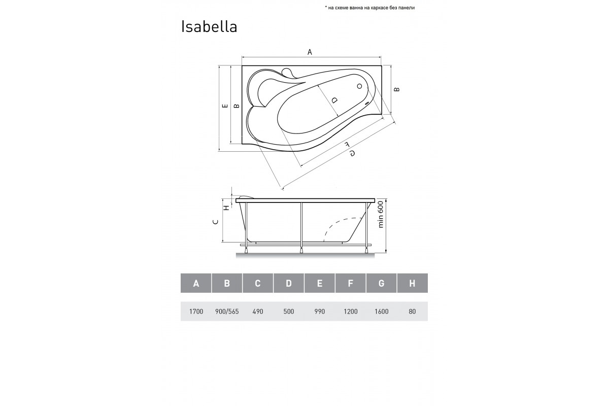 Ванна акриловая Relisan Isabella L 170x90