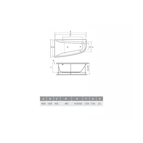 Ванна акриловая Vayer Boomerang (EH) 180x100 L