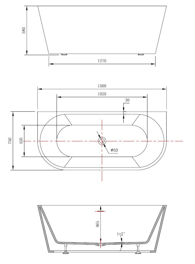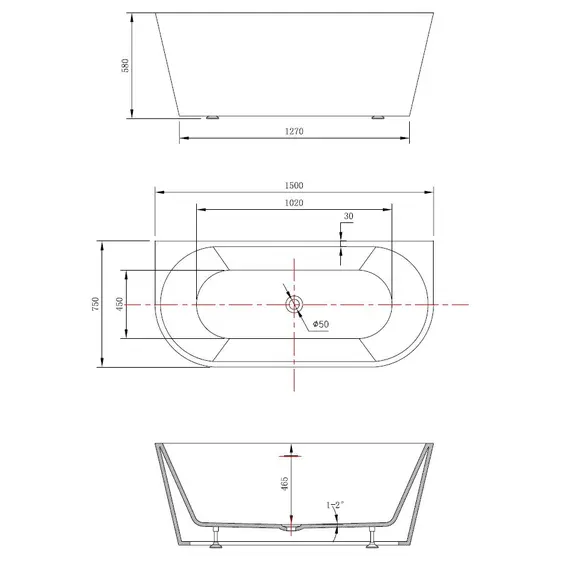 Ванна акриловая Vincea VBT-421-1500, 1500*750*580, белый