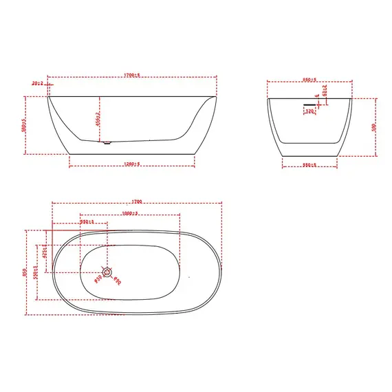 Ванна акриловая Vincea VBT-601-1700, 1700*800*580, белый