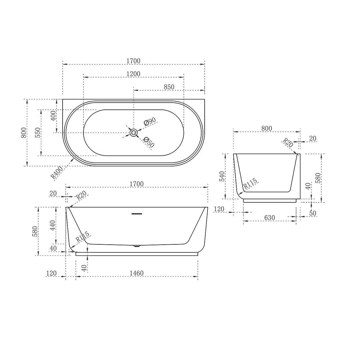 Ванна акриловая Vincea VBT-621, 1700*800*580, белый