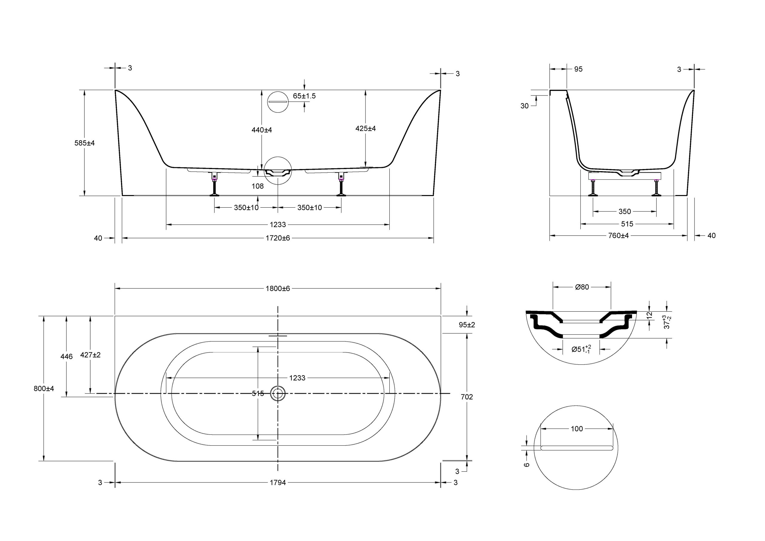 Ванна акриловая Vincea VBT-703-1800, 1800*800*585, белый