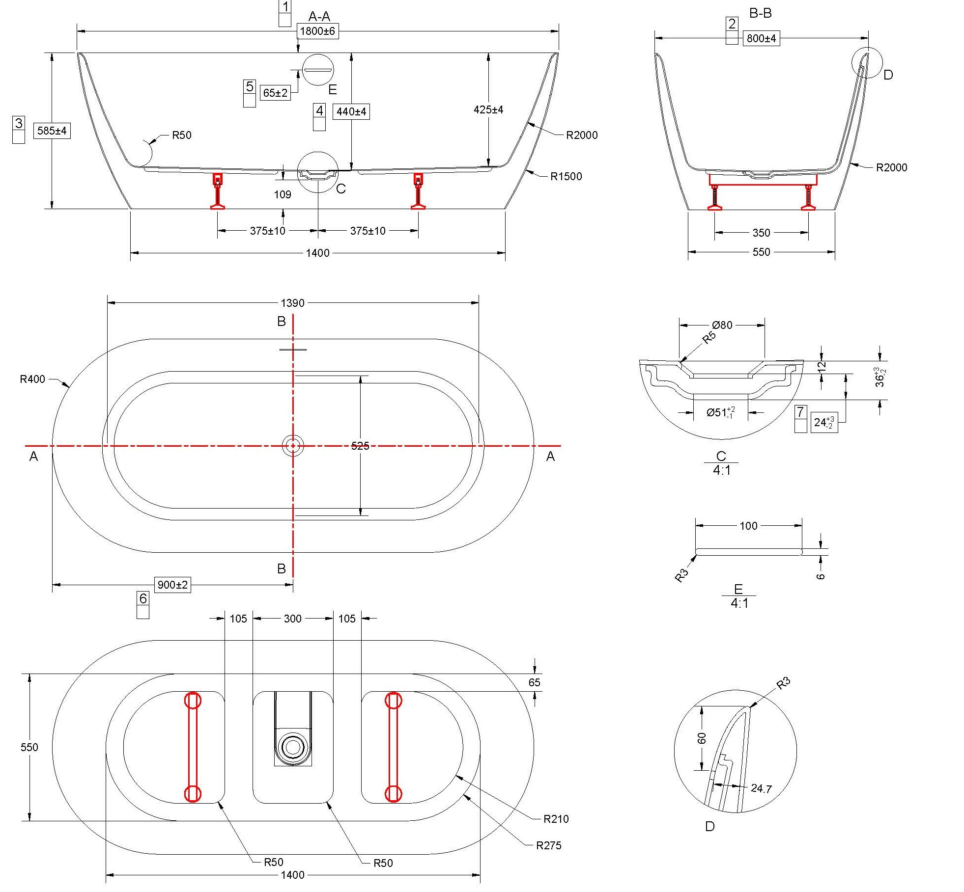 Ванна акриловая Vincea VBT-705-1800, 1800*800*585, белый