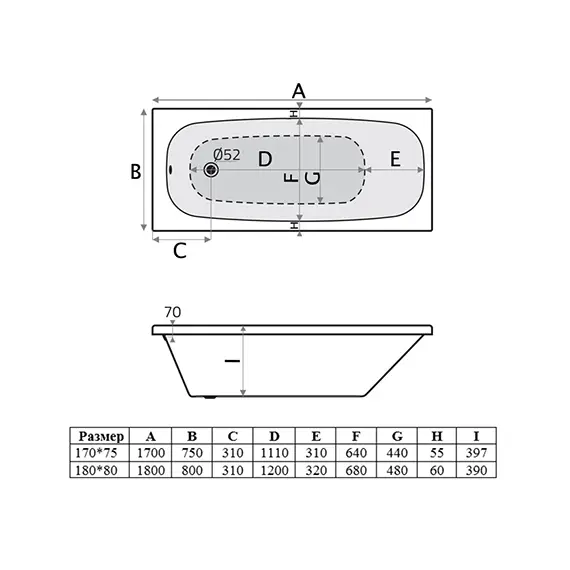 Ванна акриловая Vincea VBT-2S170-FR с каркасом 1700*750*440, белый