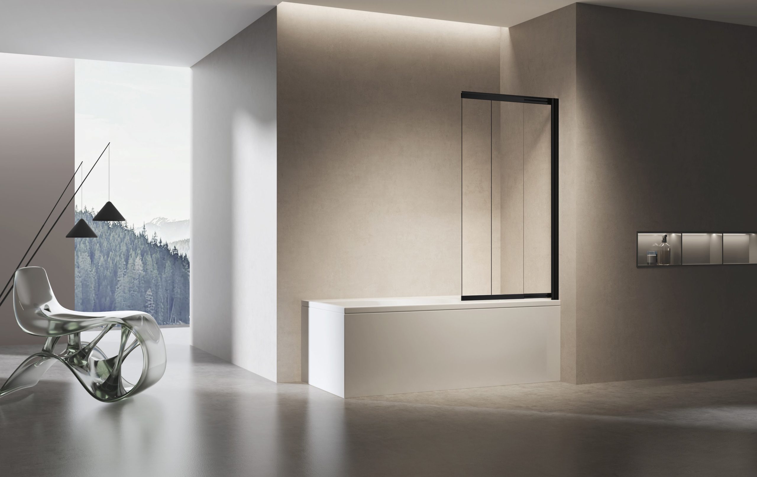 Душевая шторка на ванну Vincea VSB-6E900CLB-R, 900*1400, черный, стекло прозрачное, правая